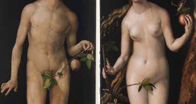 十五世紀之後的繪畫多半就將禁果畫成蘋果(Malus pumila或Malus domestica),比較有名的例子如:Dürer (1507)、Gossart (1520)、Lucas Cranach the Elder (1533)、Tiziano (1550)、Tintoretto (1550)、Goltzius (1616)、Rubens (1628)…,以至於今天問大部分人夏娃吃了甚麼禁果?答案都是蘋果。通常的解釋是拉丁文的惡(malus,先不管性別和位格變化了)和拉丁文借自希臘文的蘋果(malus)是一樣的字形。這就變成了:夏娃吃了蘋果(malum)就得了惡(malum)。老實說,這 – 還 – 是 – 沒 – 道 – 理 – 啊!如果禁果包含善與惡的成份,怎麼”善”的那一半就不見了?