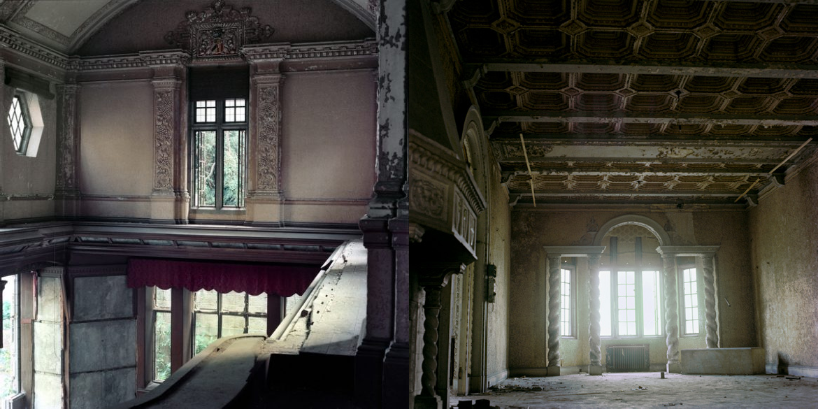 王禾璧(Wong Wo-Bik, 1949-)從 1980 年代開始用相機捕捉消逝的空間,如 Euston Windows, Bonham Road, Hong Kong 中的余氏大宅,為富商余東璇在 1927 年定居香港時,分別在般咸道、淺水灣和大埔所建造的三棟歐洲風格的華麗別墅,在 1980 年代時經變賣拆除,今已不復見。此種建築上的「異位」也透露 了香港曾經的被殖民歷史,以及華人在認同上的離散經驗。照片中荒涼、空無 一人的建築內部,似乎訴說著失去的傷感。城市的樣貌在時間的長流中變換,一些存在的事實終將成為歷史。