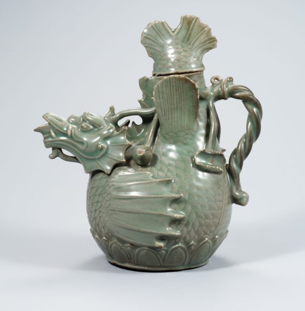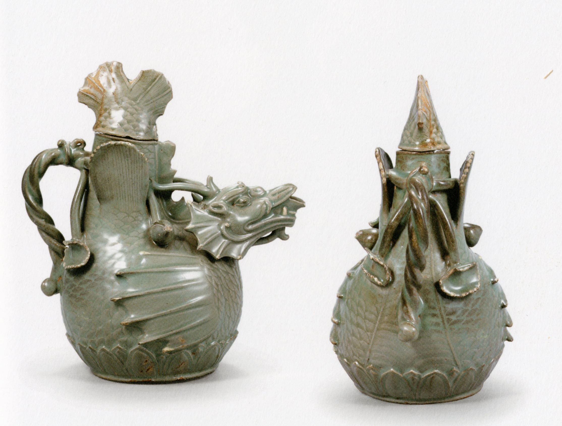 在了解怪水壺身世之謎之前,我們必須先談談「高麗青瓷」是什麼東西。顧名思義,就是在「高麗」時代,製造的「青瓷」,通常解釋起來越簡單的事情,背後內容相對的會非常複雜。簡單來說,在那個西方人尚未習得瓷器燒造配方的很久很久以前,朝鮮半島地區約在九世紀末期間,已開始試燒出所謂的「瓷器」,其中青色瓷器的興起與中國唐代浙江越窯淵源密切。但對韓國人來說,不管高麗青瓷的興起與中國有多麼深厚的淵源,重點是:它是用了朝鮮半島的土、朝鮮半島的礦物、朝鮮半島的水,還有大量朝鮮半島上無法休假的勞工,在高麗王朝中央政府大力監造的壓力下,土生土長、自產自用所創造出的「高麗青瓷」!其青翠深邃的釉色、巧奪天工的裝飾技巧,今日仍被韓國及世界視為珍寶。