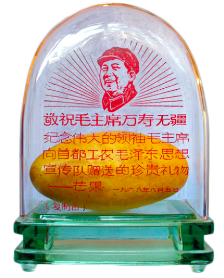 1968到1970年之間,中國短暫地出現了一個神祕的芒果崇拜現象。突然之間,芒果的圖像變得在日常生活中無處不在,在宣傳海報、徽章、餐盤、布料上中都可以看到芒果黃澄澄金燦燦的身影,報章雜誌上也充斥為歌頌芒果而作的詩,以及見證芒果帶來的奇蹟功效的文章。毛澤東(1893-1976)私人醫師李志綏(1920-1995)在回憶錄中,寫下他當時在北京針織總廠的見聞,可以一窺芒果崇拜的狂熱: