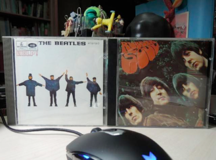 在我手邊有兩張披頭四發行於1965年的專輯,稍早的《救命!》(HELP!)和號稱該團創作分水嶺的《橡皮靈魂》專輯[1],後者在音樂風格上躍進與成熟,封面左上角的專輯名稱「圖案」,也和前者的制式字型有截然不同的設計思維。【圖1】