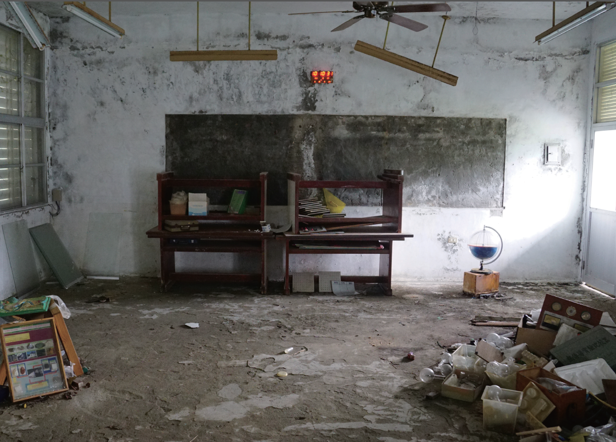 工作坊的分組創作中,《電子鐘》可被視為一個精采的例子。部落中廢棄的國小課室,原本早已封住了一個自外而獨立的時間-空間。打開教室門,那裡卻沒有廢墟的傷感或愁悵。先吸引住目光的,是斑駁牆面上的一顆LED裸露電子掛鐘。它既安靜又昂揚。仔細觀察,紅中帶橘的燈粒顯示的時間,整整提早了一個禮拜。也就是,不管什麼時候來,註定永遠要晚了一個禮拜、註定永遠要錯過一個禮拜。關於那個永遠錯過的一週,觀眾永遠無法參與。它只和課室中的地球儀、標本罐、平底燒瓶…,兀自共同存在於那個既沒有主體,也因此沒有客體的時間-空間中。就如同課室講桌上那盆精神奕奕的塑膠花,它無需附掛在人所賦予的任何意義或時間。