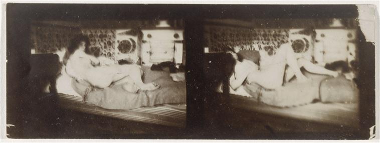 另外2個重要的攝影系列,當屬他在巴黎公寓及巴黎郊外蒙特沃(Montval)附近花園拍攝瑪特的裸體習作【圖3-圖6】。經過比對研究,這2個系列皆與波納爾接受的插畫委託案有關。巴黎公寓拍攝的瑪特是他為法國著名詩人魏倫(Paul Verlaine, 1844-1896)抒情詩遺作《平行集》(Parallèlement)【圖7】構思版畫插圖。而自己也裸體入鏡的蒙特沃系列,則是為出版古希臘作家朗格斯(Longus)田園牧歌詩《達芙尼與克羅伊》(Daphnis et Cholé)【圖8】的預作準備。但同樣的是,波納爾從未以繪畫複製攝影,他是以編導指示瑪特的身體動作,使她的姿態更符合抒情詩情境,賦予女性身體撩撥興奮、引人發熱的性感。照片中瑪特的模樣比畫作呈現拘謹許多,是波納爾做了改動使女體更顯自適狂放。以上這些照片之於波納爾的繪畫,就像是一種幫助記憶的符號,因為根據波納爾的解釋,他的作畫細節向來源自他的想像和記憶。基本上只要在他面前真有實際的主題/客體存在,需要對景作畫,他的注意力都會被嚴重分散,令他無法繼續創作。而攝影是幫助他記下事物對象吸引他的瞬間時刻。