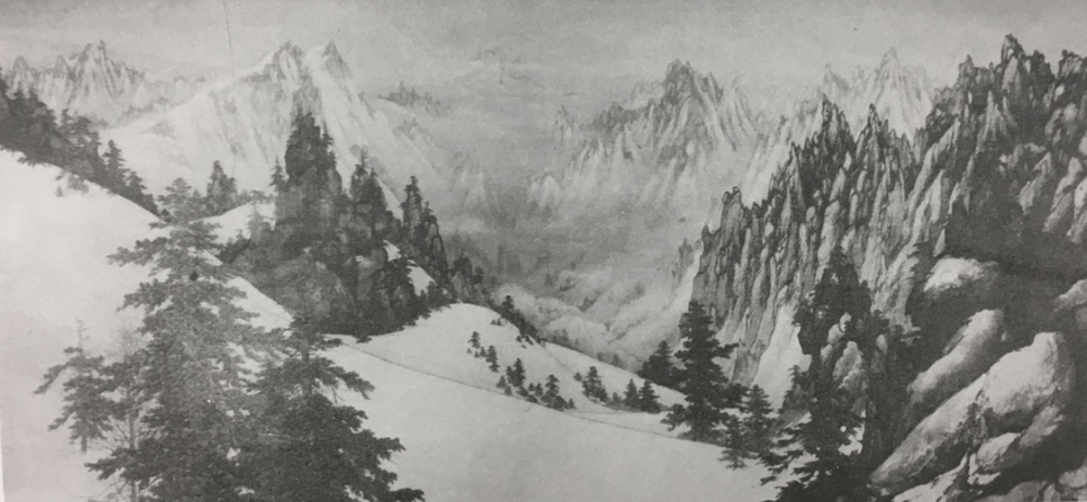 來臺途中,他先前往朝鮮京城(首爾),探訪朝鮮山岳,足跡包含金剛山、長白山等地,取材作品先後入選第5、第6回朝鮮美術展覽會。【圖3】 一年多後,那須雅城才回到年少時踏訪的故土-臺灣。恰逢1928年底昭和天皇即位的「御大典」,那須決定要描繪臺灣的山岳作為祝賀天皇的禮物。