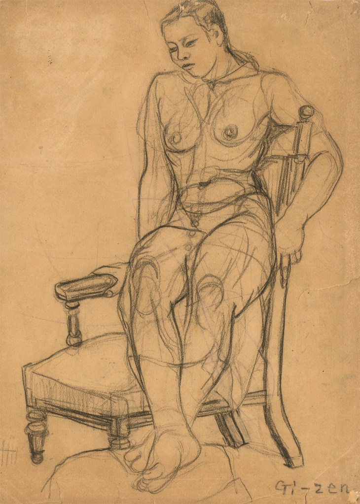 1935年,呂基正為了精進畫藝,前往東京學習。這段期間,他除了學習油畫之外,也大量練習人體速寫【圖4】。幸運的是,這批速寫還保留至今,可見到其紮實的素描訓練對於日後描繪人物與風景畫的幫助。[3]