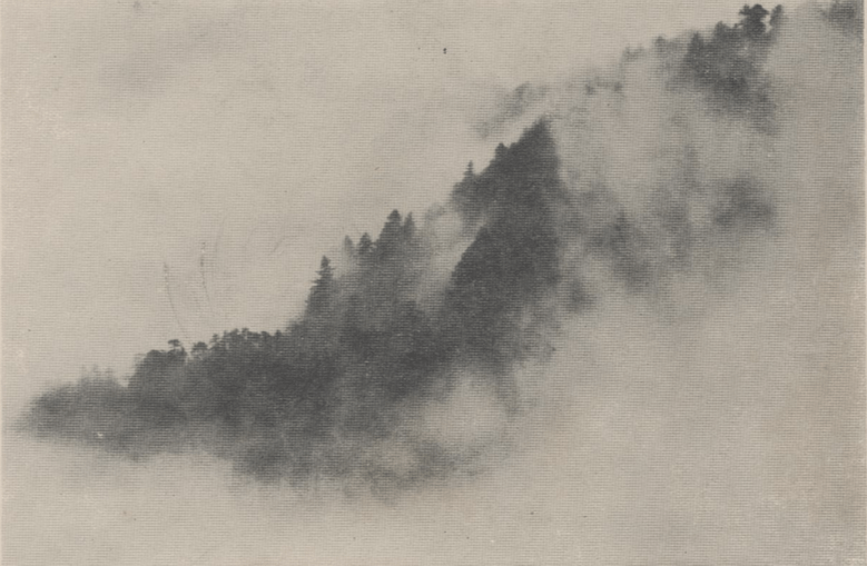黑白影社的作品有一半以上充滿著畫意風格,不僅在題名上直接指出與中國傳統繪畫的連結【圖2】,畫面中也蘊含著中國水墨畫的精髓,色調濃淡的層次變化與虛實相生的意境,呈現富含韻味及詩意的風景。有時為了使作品更加完善,會運用放大機的操作改變色調及調整光影的明暗度,或是透過底片的疊加,將原本空無一物的背景增添為豐富且壯闊的天空【圖3】【圖4】。