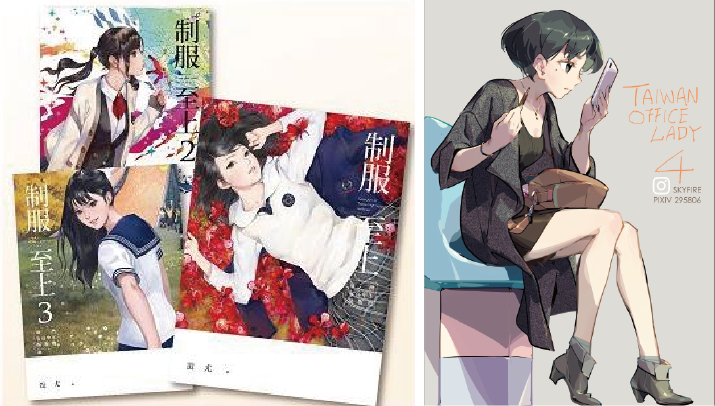 談到美少女,讓我想到另外一位國內的插畫家,天之火。他的主題大多都是描繪臺灣OL的生活,插畫裡也有許多我們所熟知的事物,這種親切感讓我也很喜歡。他最近也得到了「2020I.M.A 國際現代美展」的殊榮。