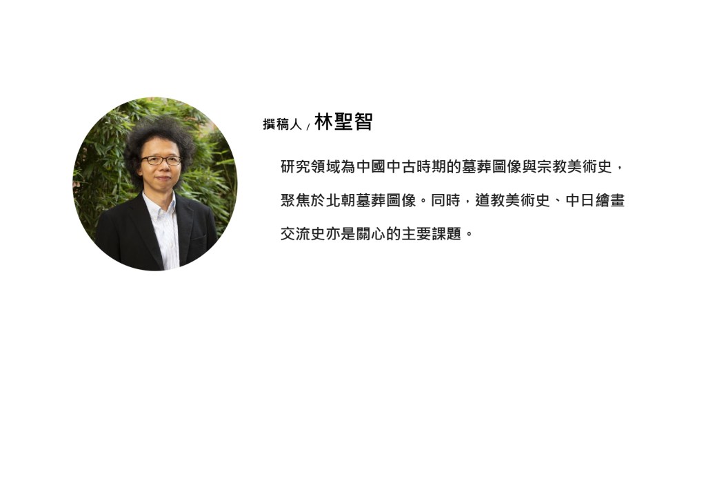 高句麗壁畫墓可見到類似的表現。平安南道南浦市藥水里壁畫古墳年代約在四世紀末五世紀初,由甬道、前室、後室所組成。後室上半描繪日月、四神、星宿等天界圖像。墓主夫婦坐於榻上,上方有帷帳。值得注意的是墓主畫像位在後室北壁上側,與天界圖像的高度相同,並且位在北斗七星的下方。如果說吐魯番阿斯塔「莊園生活圖」壁畫中的作法是將北斗移至墓主帳內;在藥水里古墳中則是將墓主提升至天界,並且以北斗來護佑墓主【圖6】。兩例中北斗與墓主的主客關係不同,但是都表達了墓主為北斗永恆相伴的願望。