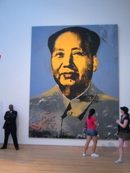 七○年代後,沃荷不再做準確的套色,而是以更隨意的態度刷上底色、增加一些隨性的手繪筆觸,最後再印上黑色的輪廓。在「名人肖像系列」《毛澤東》(Mao)中【圖6】都可以在畫面上看到這類刻意表現的筆觸【圖7】。表面上,這種手繪效果減低作品的機械性,讓畫面看起來更有「藝術性」或「個人性」,以滿足客戶對肖像畫的期望,進而提昇他的作品價格外,最重要的是,還可以加快製造速度,沃荷告訴訪問者:「當我作肖像畫時,半繪畫式的表現只是要給作品一種風格。這相當有趣,且快多了。潦草比工整快多了。」[5]