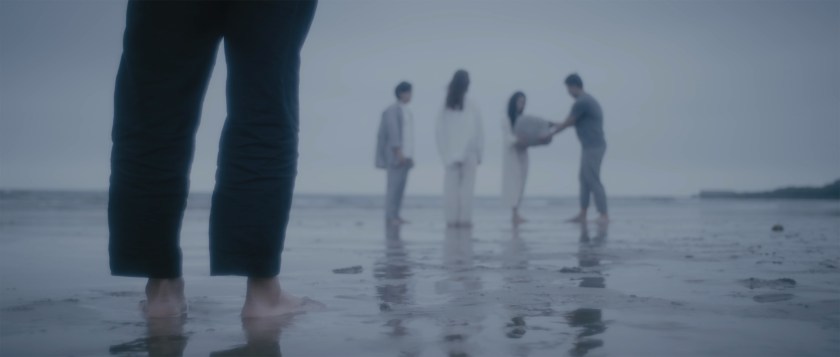 海與人的內在連繫,讓人想到榮格(Carl Gustav Jung)解釋心理結構時給出的比方,若再匯合道家思想,其比喻之貼切及予人會心,則不只是因為海或隱或顯著島嶼,猶如意識明滅,以及海床綿延到無處不相連,如集體潛意識,還在於海作為一總體經驗智慧的象徵,以潮汐往復,向人們啟示如此模式、屢以凡常,是它終將持續的永恆復歸。始終如一的規律變遷,提示往復回返本就是自然運行的法則,法則中萬物總會回歸到原始樣態,如同海縱然將生命生消輪替,其循環也終歸是同樣的元素組成。至此再倒轉回去細看吳家昀的《空》,那些從離散段落串起的時序脈絡,原來已在後設整合中浮現它們令其執迷的共同點:只見風、光、水、影等元素在黑暗中同語反覆,隱約道出從紛異收斂回本質的處世態度,似在期許心思像海,無論覆滅多少時間、吐納多少現象,仍舊會追回它初始萌生的樣子,保持初心。