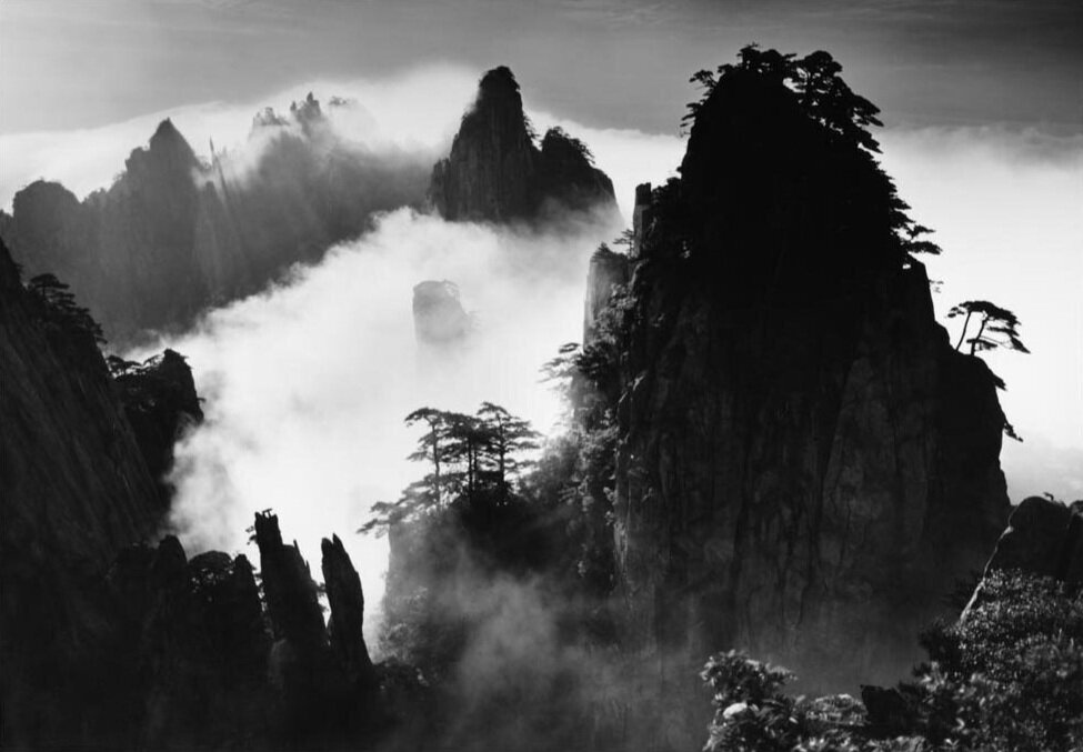 「山水」一詞,對於中國傳統文人而言,被寄予著理想與和諧,它可居可游,也可遁隱其中。即使在當代山水攝影師汪蕪生(1945-2018)的作品中【圖1】,我們仍可以感受到物我交融的和諧,其以黝黑的山體與亮白的雲霧表現出黃山帶給他的震撼。