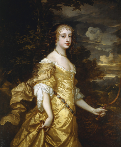 斯圖亞特王朝復辟後,查理二世(Charles II)更加重視藉由肖像畫強調王權、宣傳皇室良好形象的慣例。皇家首席畫家萊利(Sir Peter Lely, 1618-1680)以及特別受皇后布拉干薩的凱薩琳(Catherine of Braganza)重用的法蘭德斯畫家休斯曼斯(Jacob Huysmans, 1633-1696)因而受惠,為皇室成員以及其他活躍於宮廷中的人們繪製了許多肖像畫。