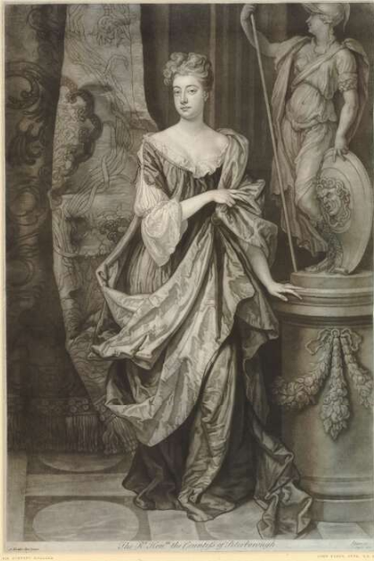 第一幅是內勒受瑪莉二世(Mary II)委託繪製、由8幅畫作組成的《漢普頓宮美人》(Hampton Court Beauties)系列中,[6] 彼得伯勒伯爵夫人(Carey Fraser, Countess of Peterborough)的肖像畫【圖9】。畫中,伯爵夫人站立於米聶娃雕像旁邊。內勒使用了與亨麗埃塔・瑪麗亞(Henrietta Maria of France)肖像畫相同的手法【圖5】,僅並置米聶娃與女性,沒有讓畫中人直接扮裝為米聶娃。