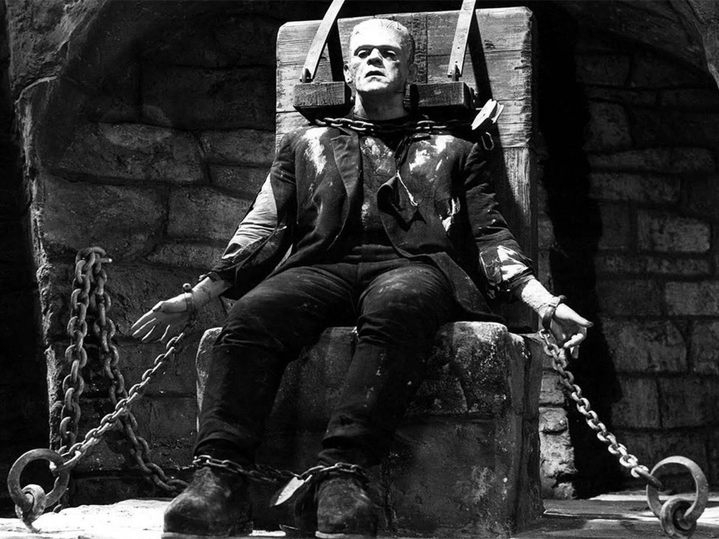 但《銀翼殺手》大幅拉近仿生人與人的距離。在1930年代由鮑里斯‧卡洛夫主演的環球電影系列中,弗蘭肯斯坦博士以「怪物」(the Monster)稱呼他的創造物【圖2】,其他綽號還包括「惡魔」、「幽靈」、「壞蛋」、「東西」。總之,那生物沒名沒姓,形貌駭人、口齒不清。《銀翼殺手》裡的仿生人則貌似人類,有名有姓,有勇有謀,而且文明——獨白顯示他的語言遠遠脫離智性的實用功能,它以凝鍊、富美感的意象和比喻為自己的存在與消逝下註腳。然而,如果說美感經驗的昇華、藝術創作是人類生活的演化指標,此處做為區隔人與非人類的評判標準,藝術是無效的。