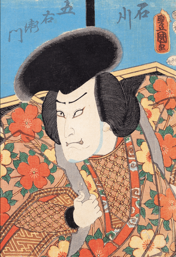 江戶時期,一般民眾對歌舞伎表演的喜愛日益加深,為滿足一般民眾對著名歌舞伎演員的崇拜需求,也為了緊密配合劇場的商業宣傳,促成了役者繪的流行。[1] 役者繪作為浮世繪的主要題材之一,主要呈現歌舞伎演員在舞臺上以及相關的生活形象,功能類似於今日作為宣傳用的演出海報。[2]在中大藝文中心典藏中役者繪亦佔比最多,作品形制呈現出多樣的樣貌,包括單幅作品和數量豐富的二聯作、三聯作。