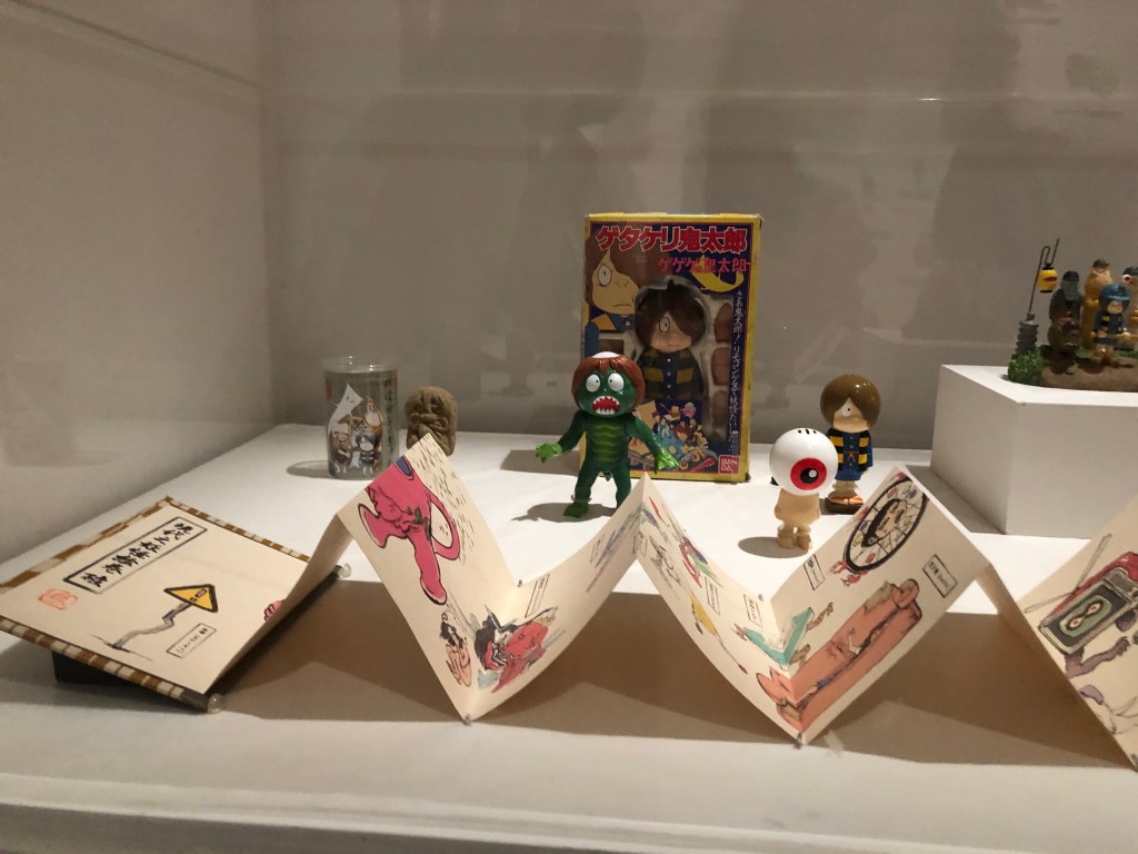 台灣不只在歷史上有政策的殖民意識介入,日本流行文化也一直是台灣常常效仿的潮流。全台耳熟能詳的南投妖怪村,就是直接複製日本鬼怪元素的觀光景點。許多動漫與日本恐怖怪談的產物,覆蓋台灣民眾的年齡層甚廣,對很多人而言,還是持續進行的回憶,因此雖是老調重提,但於展覽中不得不提。台版「亞洲的地獄與幽魂」將法國方原有的大篇幅日本鬼魂內容,以台灣黃千倫的《日本民俗鬼怪系列》銜接,這系列使用在東方傳統為標竿的水墨媒材,以插畫形式繪出日本各種妖怪,一方面在深入淺出的妖怪形象與研究中,顯現台灣在日本文化下如何逐漸生成特有的美學,另一方面也呼應了法國的展件【圖4】,與其他同名的妖怪物件、公仔形成對比。