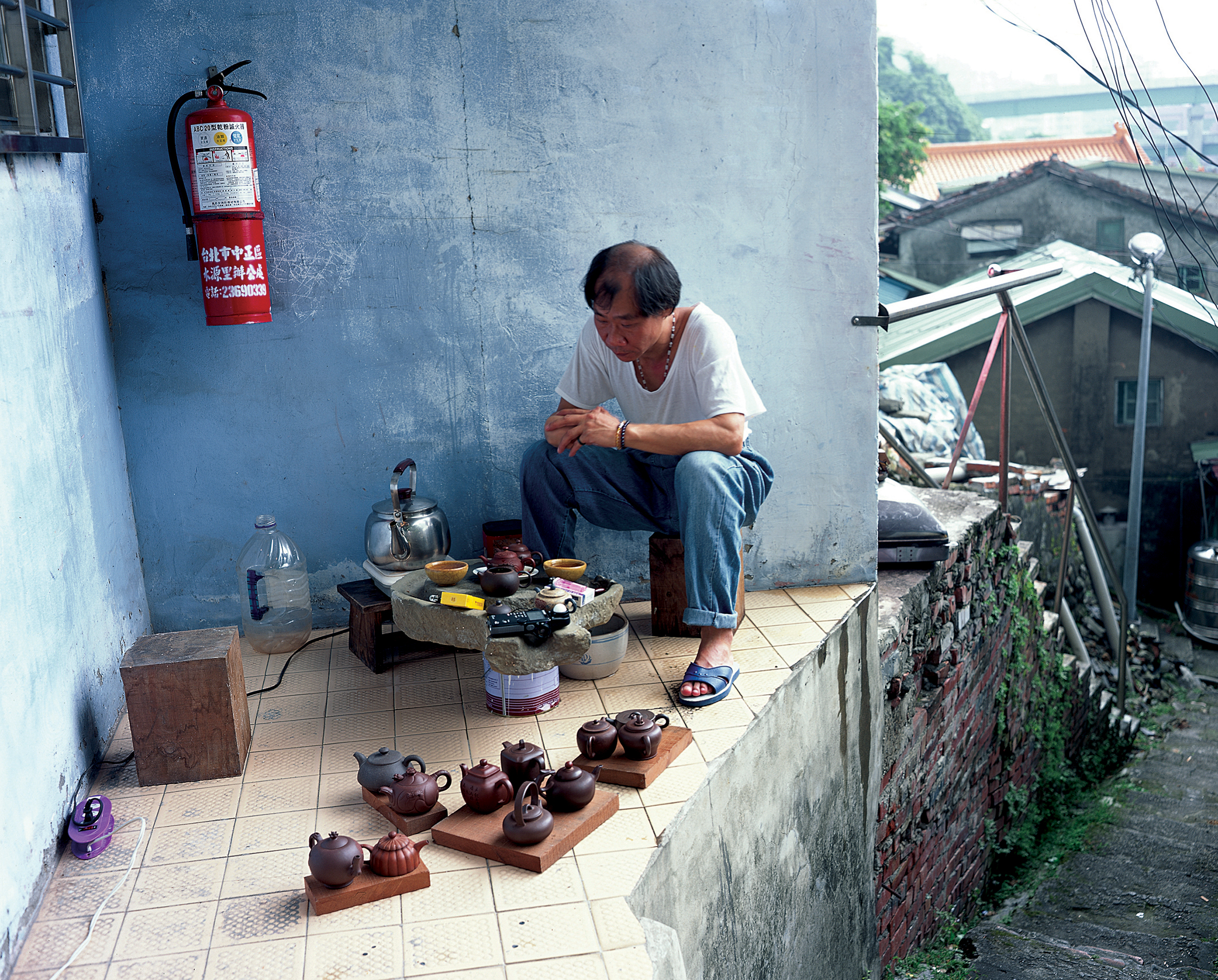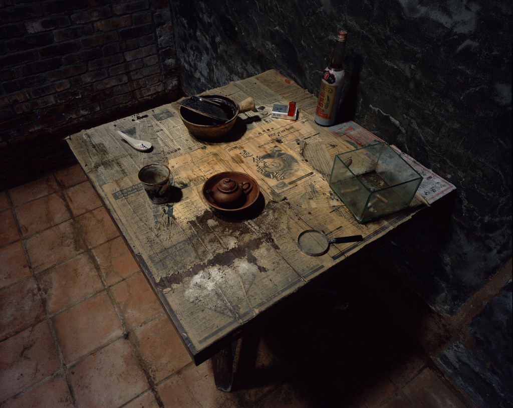 在國共戰爭後隻身流亡來台灣的葉世強,大半輩子過著深居簡出的樸素生活。他相信貧窮能淬煉出佳作,親手打造家屋,自製燭台、桌椅、花盆、筆筒等器物。藉由攝影中屢屢出現的椅子不同尺寸和置放處,引人聯想葉世強在屋內吃飯、繪畫、製作古琴、打坐冥想的起居。燭台亦為攝影的亮點,它傳達葉世強選擇使用電燈發明前的光源,寧願在昏暗中享受燭火搖曳的光暉和散發的溫暖。葉偉立用大型腳架相機的長時間曝光,拍攝室內的古樸燭台,在幽暗中浮現著紅橙的微光,這儀式氣息驅散了暗沈的霉氣,引發思古幽情。