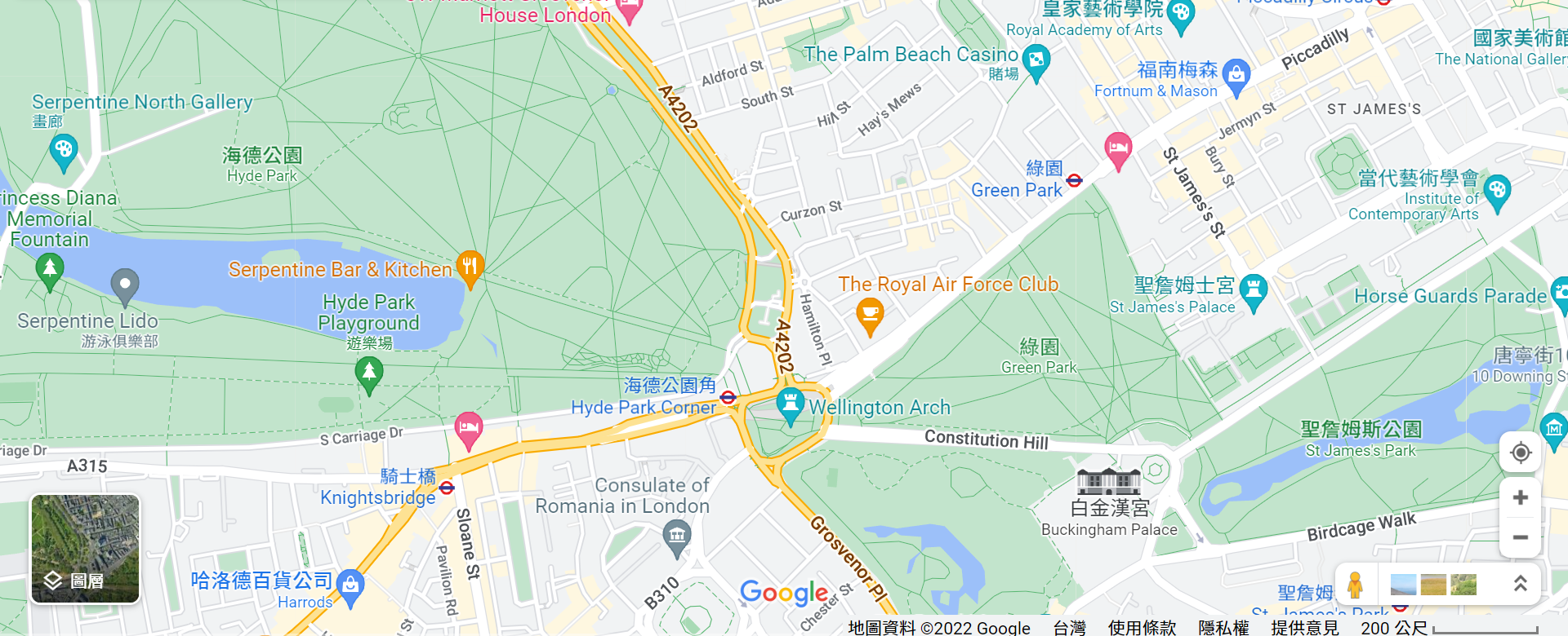 首先,不可否認,有財力和權勢的人能對地產(properties)進行改造,從而影響市容景觀。例如:倫敦市中心的三座大型皇家公園──海德公園、(Hyde Park)、綠公園(Green Park)、聖詹姆斯公園(St James’ Park),雖然在地圖上連成一氣【圖1】,但是在十八世紀末,每座公園仍設有自己的大門、圍欄,甚至收費站。彼此間沒有馬路互通,拜訪完一座公園後,若要前往第二座,即使它就在眼前,但仍需繞路才能抵達。直到喬治四世(George IV, 1762-1830; 1811-1820為攝政王,1820-1830為英國國王)即位後,想建立更宏偉的市容,才拆除了前述的「障礙物」。不只拆除,同時新增一些像紀念碑(monument)的建築物,例如拱門和雕像,也是英王所重視的。[1] 於是在1825年,建築師伯頓(Decimus Burton, 1800-1881)提出了「海德公園屏幕」(the Hyde Park Screen)的草圖,落成後即是今日「海德公園轉角」(Hyde Park Corner)這處交通要道上,最醒目的地標【圖2】。