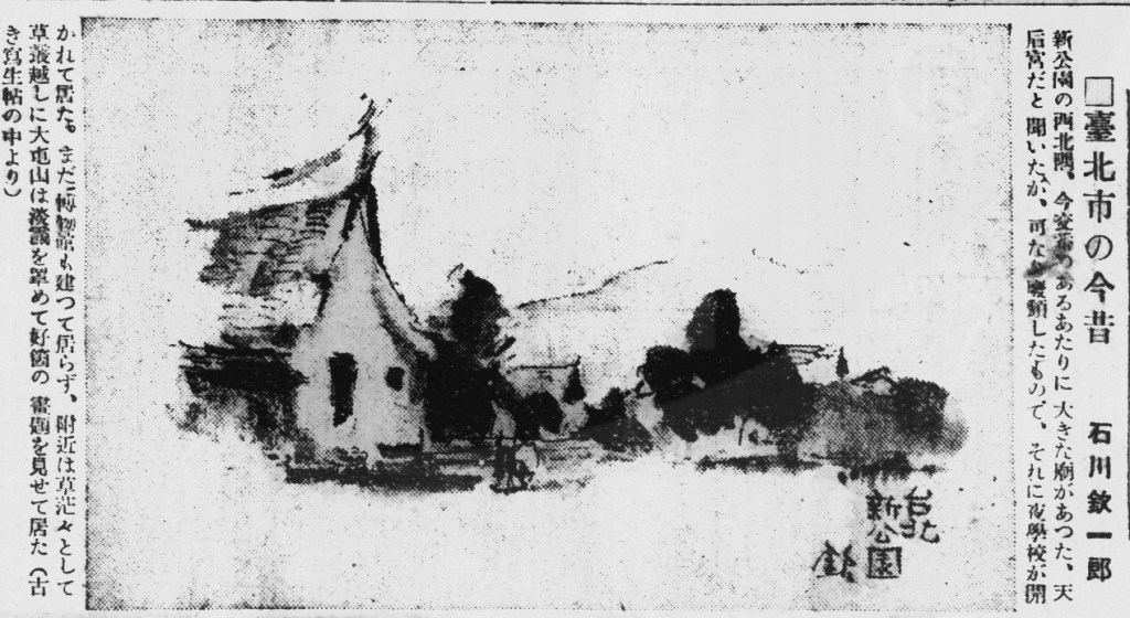 石川對消失的大天后宮似乎情有獨鍾,1932年離開臺灣前夕,還將當時的插圖,收錄進自己的畫冊《山紫水明集》中,並將題名標為「新公園」,今昔對照,盡顯畫家對大天后宮遭到拆除的感慨。