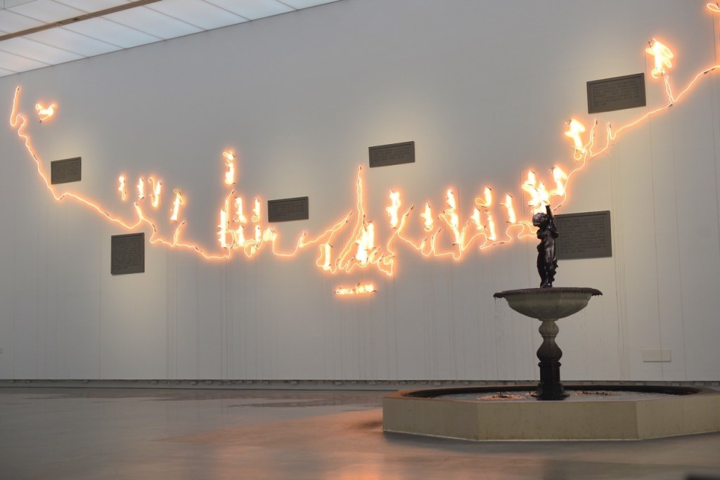 [1] 如:高美館2018年由公立美術館轉型為行政法人後,推出的開幕首展「靜河流深」(展期:2018.2.10-2018.9.2),以河流為隱喻,一方面從時間維度串聯高雄從過去、現在到未來的文化脈絡,另一方面從空間維度將展區從高美館延伸至都唐榮磚窯廠、高雄市立史博館、電影館、市圖總館、旗津灶咖等愛河行經文化與歷史場域,美術館成為串連城市紋理的節點。在104展間入口,高掛美國觀念藝術家Josef Kosuth為此展委託巨幅新作〈世界地圖(台灣)〉,俯瞰全場,為相關時空脈絡提出地誌學式詩性想像,爾後該作為高美館典藏,並移往內惟藝術中心常設展出;南美館「向眾神致敬—宮廟藝術展」(展期:2020.7.23-2020.11.8)、「鯤島新地圖-熱蘭遮城400年前導展」(展期:2022.3.31-2022.10.30);嘉美館自2020年開館以來,長期聚焦於地方歷史的策展及藝術書寫,其中又以開館首展「辶反風景」(展期:2020.10.6-2021.1.10,展區延伸至市區的嘉義文化產業園區、美街藝廊及朝海裱畫店)、「捕風景的人—方慶綿的影像與復返」(展期:2021.3.13-2021.8.29)、「由林成森」(展期:2021.9.11-2021.12.5,展區延伸至市區的嘉義製材所、阿里山上的沼平公園)最具代表性。