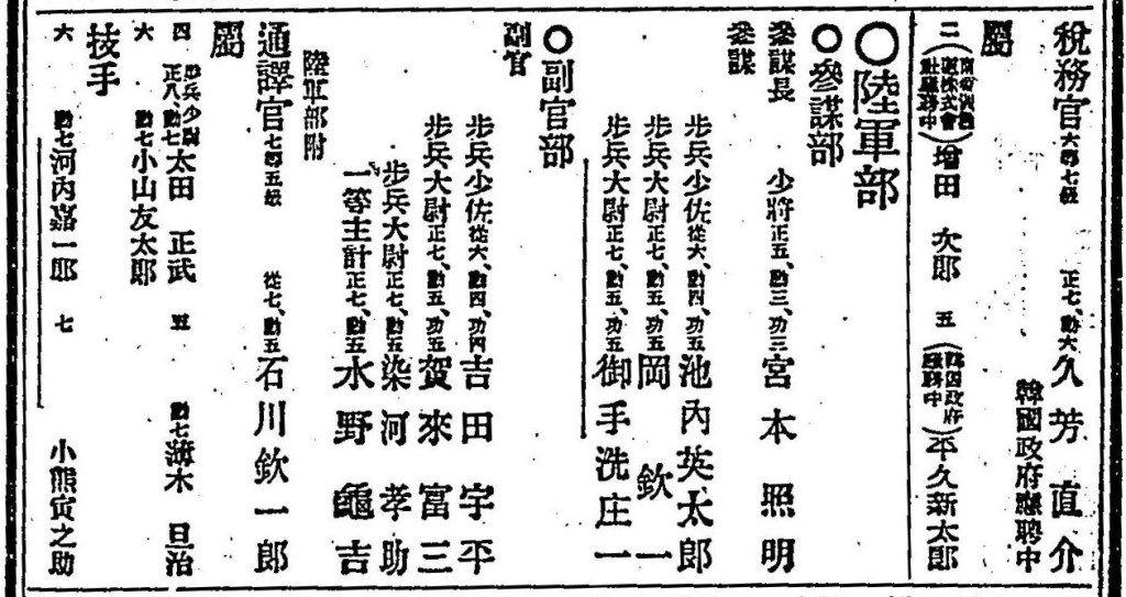 從日本內閣的職員名錄,可以看到小熊寅之助原本屬於參謀本部的陸地測量部「技手」,也就是使用新式的地圖測繪技術,從事國土測量、調查與繪製地圖的工作。1907年以後,與石川欽一郎同屬臺灣總督府陸軍部,可能是同一時期轉任。