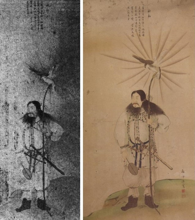 右:【圖9】現存的木下靜涯畫神武天皇東征肖像草稿(白適銘,《世外遺音:木下靜涯舊藏畫稿作品資料研究》,臺北:藝術家,2017)