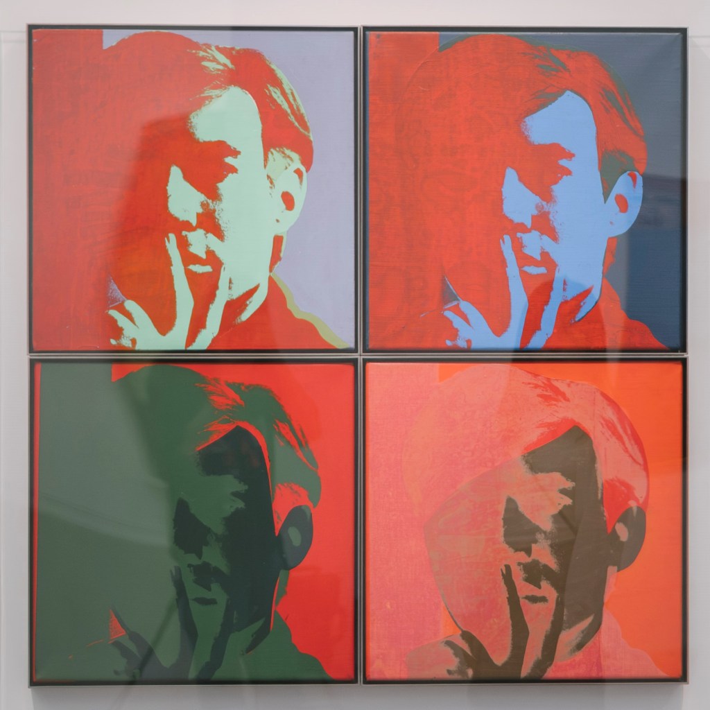 除了畢卡索,本次展覽的另一個焦點便是安迪.沃荷(Andy Warhol, 1928-1987)了。與畢卡索相似,沃荷也作為藝術流派的代表性角色之一,在創作上皆具備一定的革新與前衛精神。然而不同於畢卡索的作品對具象圖像的遠離,甚至在視覺上帶有某種「抽象」的意味,沃荷則大方地擁抱各式通俗的大眾圖像,更將其進行複製、重製,使高雅藝術(high art)與大眾文化變得更加模糊。[1] 本次展出沃荷的兩件作品,分別為《自畫像》(Self Portrait, 1966-1967)【圖5】與《兩個馬龍》(Double Marlon, 1966),後者為美國影帝Marlon Brandon的影像,前者則是沃荷自身的影像。兩件作品皆將人物複製,以網版絹印的手法,印刷到大型的畫布之上。這樣的手法使得作品在視覺上產生了某種矛盾:乍看之下帶有商業流行圖像可無限複製、廣傳的特性,細看卻又帶有孔版手工印製的質地,標誌著藝術家獨一無二的勞動價值。由此可知,面對大眾文化與高雅藝術的疆界模糊,沃荷並非僅是單純的把流行圖像的現成物擺放進美術館供人仰望,而是從媒材與尺幅下手,翻轉了該圖像在原有脈絡下俗常的形式,而媒材特性與圖像之間的矛盾,也正是作品的張力所在。