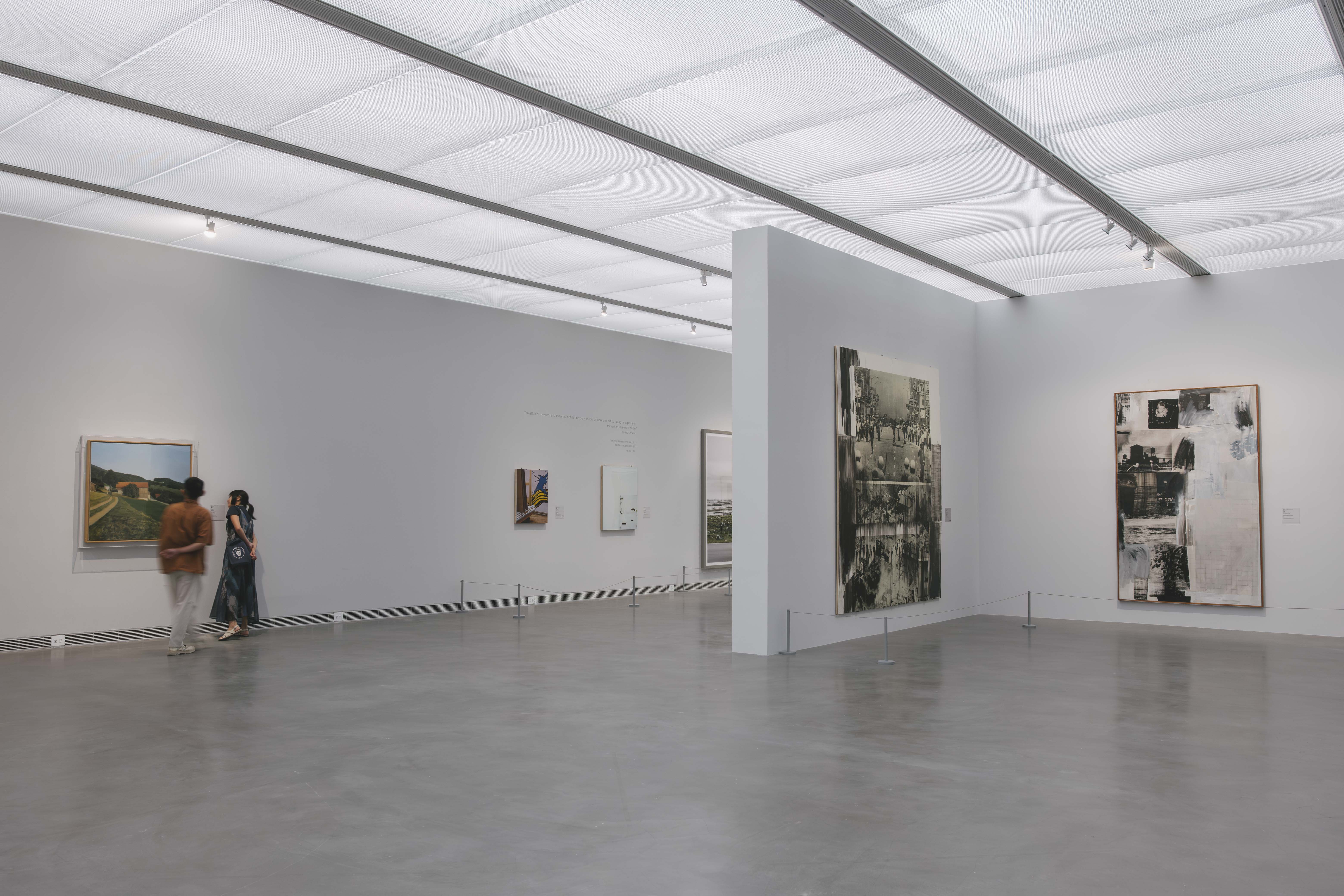 除了沃荷這種將流行影像作為畫面強力主軸的創作方式,同年代也有其他藝術家運用影像作為創作素材。羅伯特.勞森伯格(Robert Rauschenberg, 1925-2008)擅長將影像作為素材,進一步結合手繪與版印,在本次展覽展出的《年曆》(Almanac, 1962)便是他典型的作品之一。乍看之下彷彿一件灰白的「抽象畫」,細看便會發現作品是由不同影像的拼貼作為基底,包含建築物、肢體、貌似海景的景觀……等等,並在這些元素上覆蓋了手繪的痕跡。