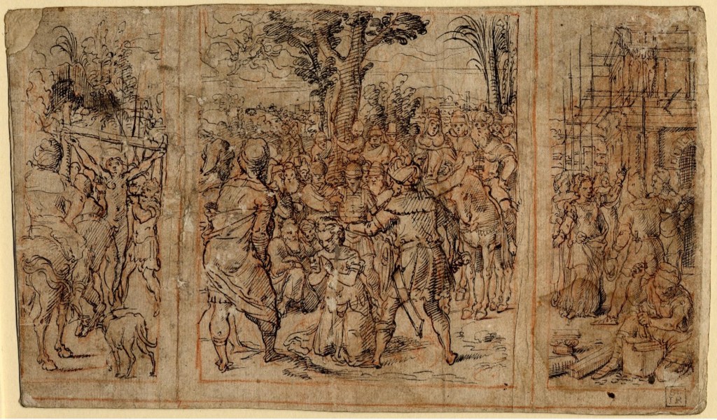 皮耶特.布赫布(Pieter Pourbus, 1510-1584),《聖芭芭拉祭壇畫之草稿》(Drawing for a triptych of St. Barbara),1525-84年,紙,大英博物館藏 © The Trustees of the British Museum,圖版來源:The British Museum。