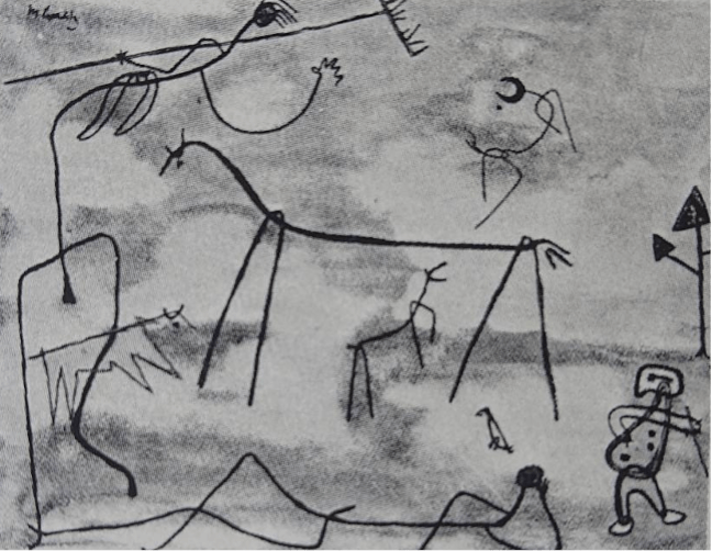 立於奇特平臺的泥塑,令人想起了一年前馬帝亞斯的舞者系列【圖3】。舞者系列細如線的軀體,令人想起了馬帝亞斯對於兒童繪畫表現的追求【圖4】。然而,與伊達合作的泥塑則更為厚實。特別是,雕塑凹凸的表面,像是回應了阿爾塔米拉洞窟中的鐘乳石柱、石壁,與同樣起落不平的壁面上所描繪的,有著浮雕效果的繪畫。尤甚者,雕塑極端的腰身比例,不見於馬帝亞斯早年的創作,卻回應了洞窟中史前壁畫的人物形象【圖5】。
