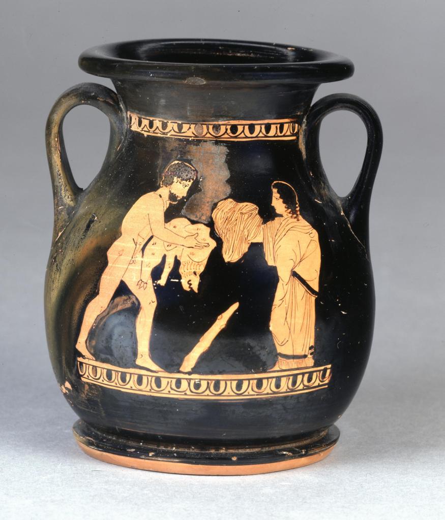 不過,赫拉克勒斯在一部分的古代藝術中,倒沒有這麼「專心」地扮演一個全職英雄。古人似乎和我們一樣熱衷名人八卦,經常通過圖像「報導」赫拉克勒斯各種花邊新聞,比如他的酒品極差,喝到酩酊大醉還會隨地方便。【圖1】