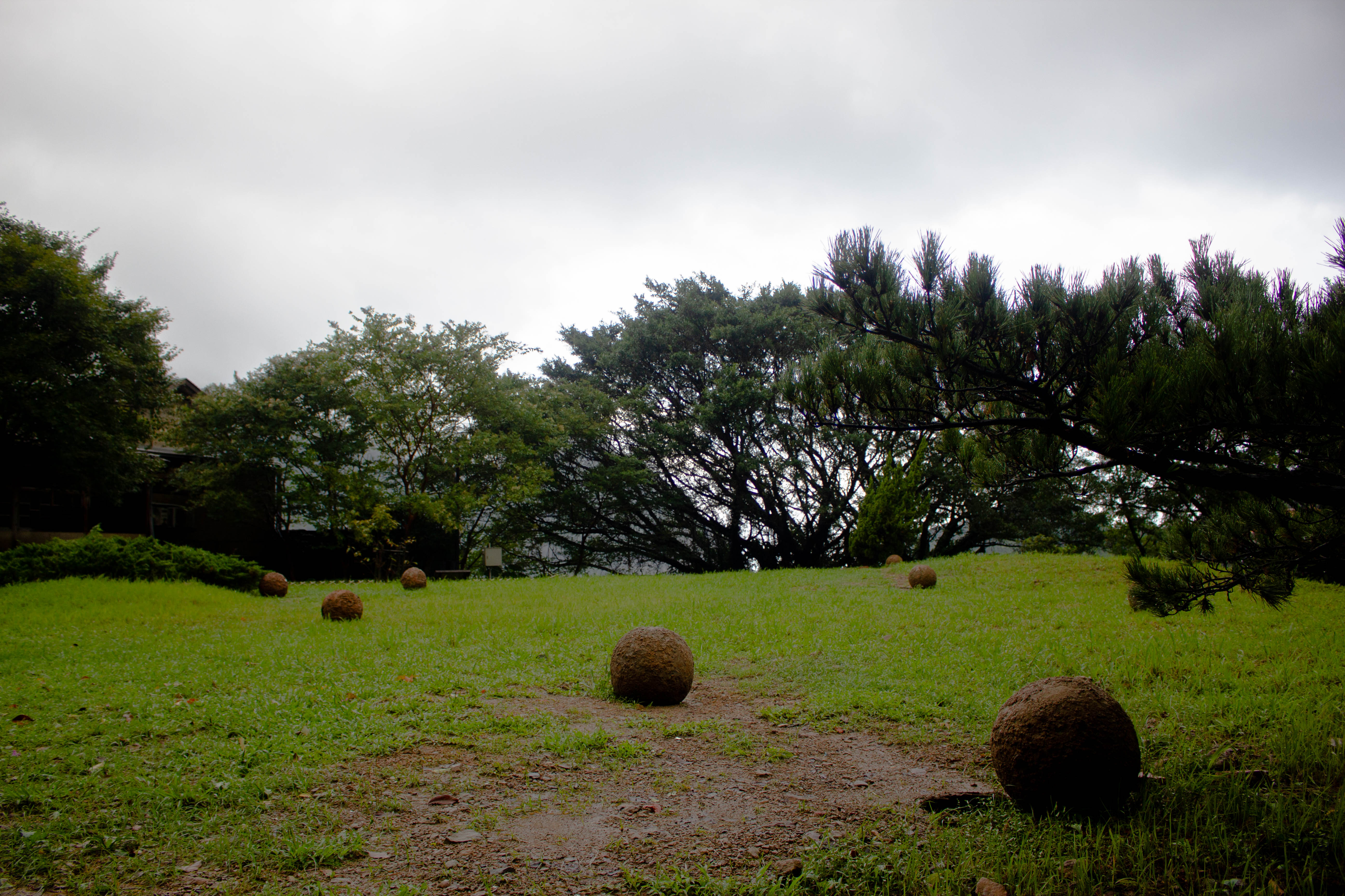 王煜松以球體作為創作的路徑,試圖呈現出萬事萬物在無主觀的思維介入之下自主運動的過程。在牛頓第一運動定律「動者恆動」的力學原理之下,球體若是開始滾動,則會無止境的滾動下去,王煜松將球體靜置在空間中,如同將時間凝固,進而也將空間固化。進入這個場域裡,仿如失去時空,只剩下當下的情境。除此之外,王煜松在「夢十夜」的藝術論壇中也分享道,在創作的過程中,他挖掘坑道的行動如同考古學家進行研究的過程。[5]他將在金瓜石採集到的土石嵌進球體的水泥層內,如同將土石形成的時空收容進球體裡,一方面將歷史濃縮在藝術家創造的情境裡,描繪出即使採集到了實物卻無法觸及過去的語境,人們只能不斷的從旁測量勾勒過去輪廓;一方面也顯現出自然與非自然之間界線的模糊,這些擺放在草地上的作品,以人工的方式凸顯自然與人為的作用,如同礦經過人們的開採及加工,抹去自然的痕跡再被形塑成人們想要的樣子。