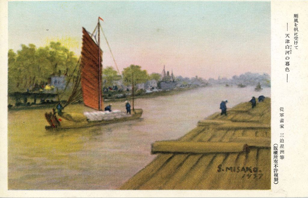 2015年,日本神奈川大學的彭國躍(1958-)教授發表〈幻の従軍画家三迫星洲——戦前絵葉書による図版の整理と分析——〉一文,成為迄今唯一的研究。[1] 彭國躍整理有「S.MISAKO」落款的風景繪葉書,考察其活動地域、創作年表。論文標題「幻の従軍画家」也成為拍賣市場上介紹三迫星洲時慣用的「Slogan」——意即身世行蹤不詳,只知道在二戰期間,曾以「從軍畫家」的身份前往中日戰爭的戰場,繪製戰地風景相關的繪葉書。