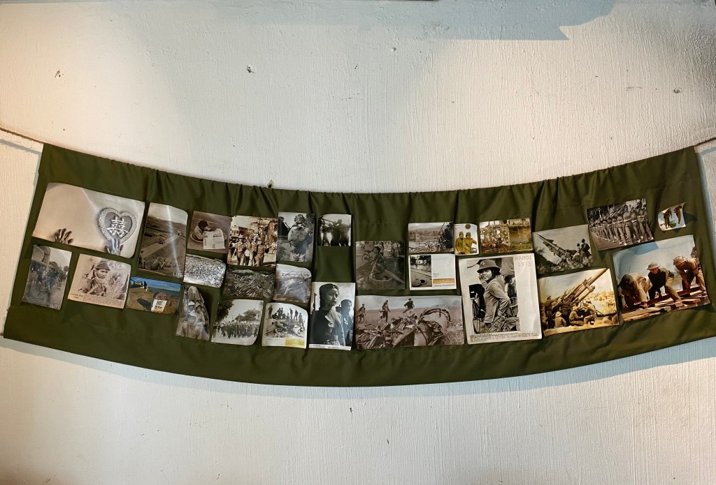 然而,隨著動亂結束與國家統一,相關印象並未隨和平而消散,反而在觀光與消費之中獲得再生。儘管越南政府強調「越南不是戰爭,而是一個國家」,戰爭的痕跡仍深植於社會,甚至成為旅遊與文化消費的核心素材。今日的旅遊書籍、社群媒體仍詳細記錄胡志明小徑(Đường mòn Hồ Chí Minh)、古芝地道(Địa đạo Củ Chi)與戰爭遺跡博物館(Bảo tàng Chứng tích Chiến tranh)等地點,外國遊客藉由這些遺址「體驗」一場「他人的戰爭」,而戰爭彷彿是一場被浪漫化的藝文創作。同樣頗具盛名的連鎖咖啡館「Cộng Cà Phê」則以戰時生活為主題【圖5】,店內裝潢融合住家、食堂、學校、軍隊或工廠等氛圍,並大量使用物資配給時期的票券、舊家具與共產海報,營造出一種懷舊式的消費景觀。這些對戰爭遺產的再利用,既回應時代的文化需求,也拓展了藝術於社會中的角色,讓曾發生的戰役不再只是風塵的往事,成為當代持續生成,重新想像與再詮釋的文化場域。