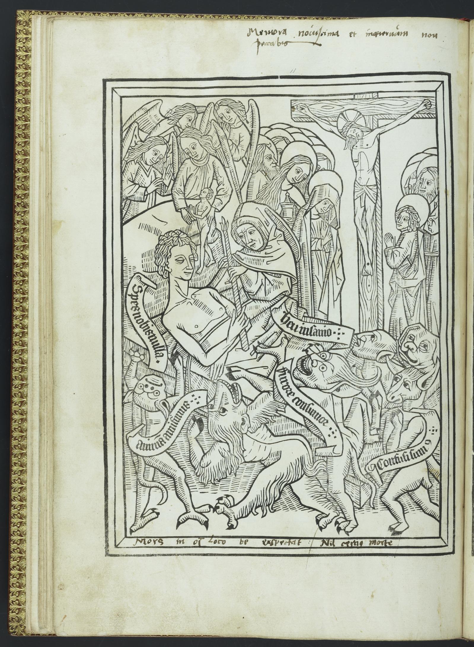 十一幅的插圖是木刻印刷《死亡的藝術》的標準配備,前面的十幅插畫都是描繪第二章節的內容,主角莫里安在死前面對的五種誘惑及其解方,最後一幅則是放在結尾,繪製莫里安死亡的時刻。