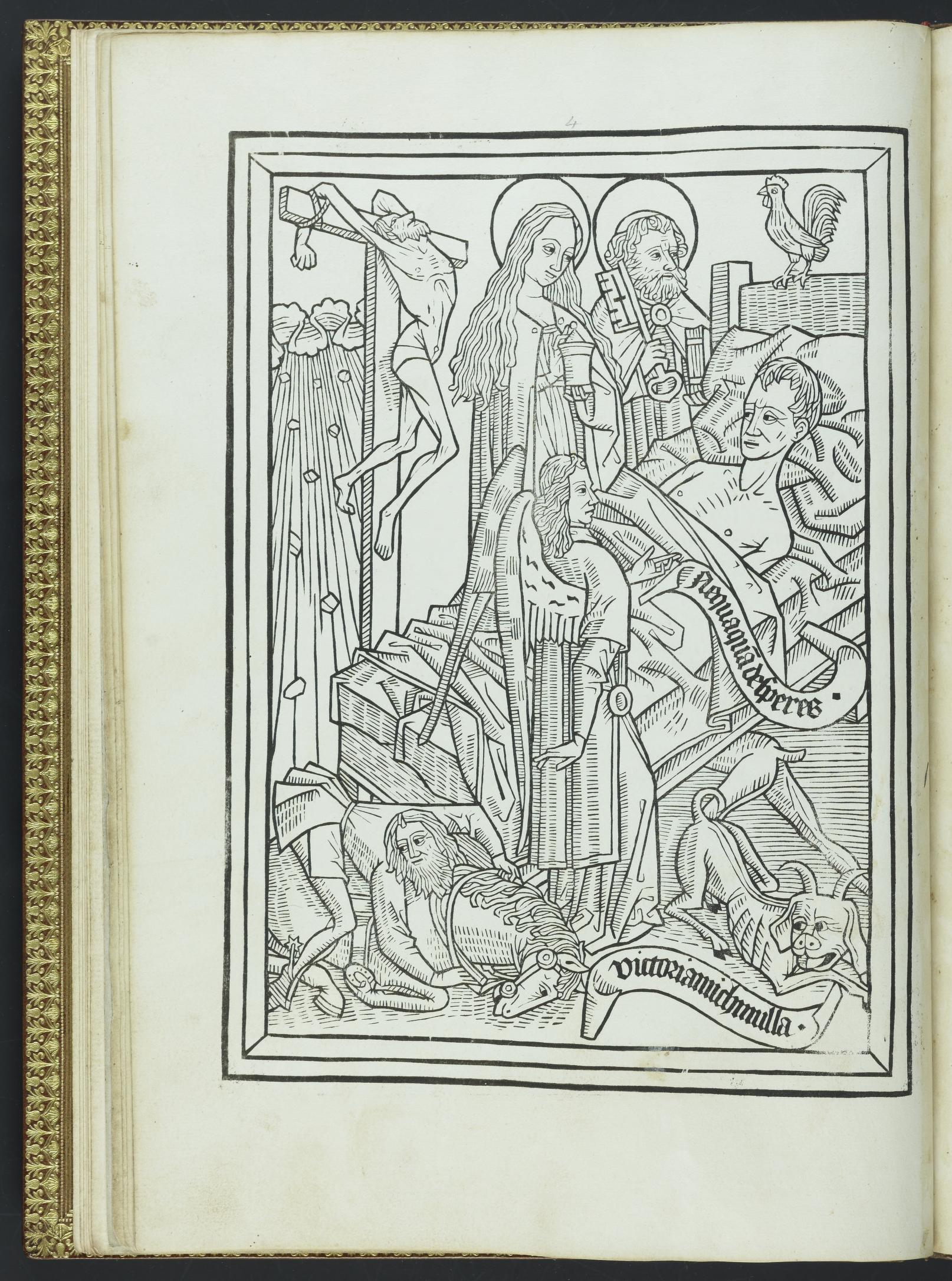 除了木刻印刷版本外,現今法國國家圖書館也保存著手抄本版的《死亡的藝術》【圖4】。由於《死亡的藝術》興起於木刻印刷技術趨向成熟的年代,一般而言,木刻印刷書籍的價格相對手工製作的手抄本便宜,這本手抄本版的《死亡的藝術》證明了這個文本在當時受到了不同社會階級的喜愛。