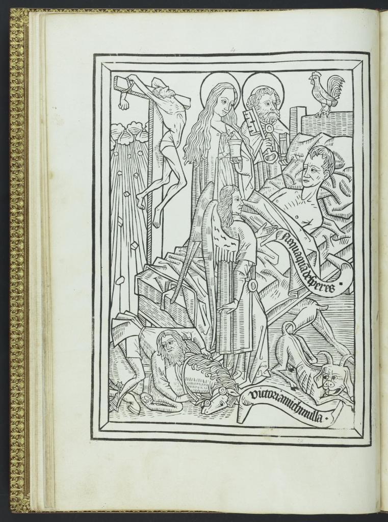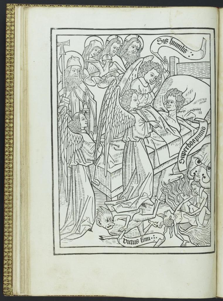 為了確保獲得上天堂的資格,中世紀出現了一系列特別的指南書——《死亡的藝術》(Ars moriendi, The Art of Dying)【圖1】,專門教導民眾死前應該執行的行為,以期待能夠在最終審判時被分到上天堂那一邊。